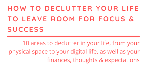 10 areas to declutter in your life, from your physical space to your digital life, as well as your finances, thoughts & expectations