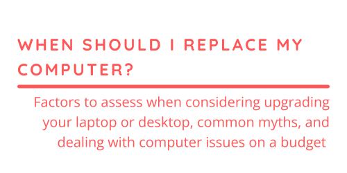 Factors to assess when considering upgrading your laptop or desktop, common myths, and dealing with computer issues on a budget